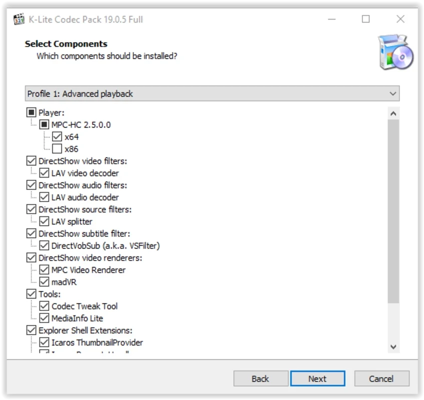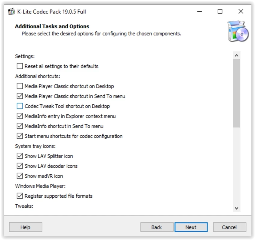 The software includes a powerful toolkit to enhance your audio/video playback experience, such as Media Player Classic Home Cinema (MPC-HC). It offers awesome capabilities for a media player. Likewise, the Codec Tweak tool allows configuration for the app.
